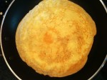 Lightly butter 6-8 inch non-stick skillet; (Hard Anodized Non-Stick won’t work; you need a pan that is coated with Teflon, or one that is very slick. I got mine at Ross Dress for Less for $8 and it works great). Heat over medium-high heat. Add a scant 1/4 cup batter to center of pan. Working quickly, pick up pan. Tilt pan around in a circle so that the batter covers the entire bottom of the pan. Keep tilting until the batter stops spreading. Cook for 15-30 seconds or until bottom is golden brown. Flip over. Cook other side for 15-30 seconds.