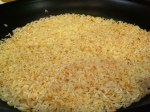 Cook rice until most of the grains are toasted a nice golden color, some a little darker. You will need to stir occasionally to keep from burning.