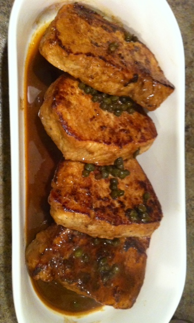 Remove the chops and plate, then pour sauce and capers over the top.