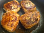 Once your chops do not appear to have any pink left on the outside (check the edges) and you have a really good seer, deglaze pan by adding the Worcestershire sauce and turn heat to medium. Scoot your chops around the pan to coat in the Worcestershire sauce, turning them to coat both sides. Cook for a few more minutes (just don’t let the sauce evaporate fully or burn).