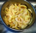 The following step is optional but is supposed to keep your apples from shrinking in your pie, creating that empty dome or fallen middle. My Braeburns oxidized a little but this was not evident in the end product.