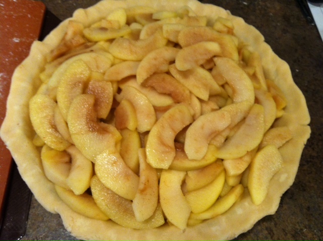 4 to 4 1/2 pounds Golden Delicious, Braeburn or other baking apples, peeled cored, and sliced into 1/4-inch slices (I used 1/2 Golden Delicious and 1/2 Braeburn)