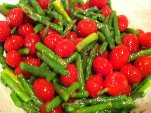 - Pour dressing over asparagus and tomatoes. Toss.