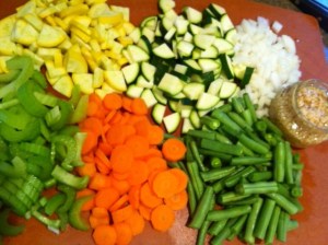 1/2 lb fresh (or frozen) green beans – don’t use canned, they will turn to mush. Cut into 1 inch pieces.
