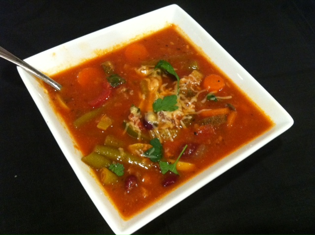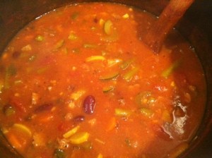 Bring soup to a boil then reduce to a simmer for 4-5 hours (or longer if you wish.) If you are using ground meat, you don’t need to cook it quite as long as all of your veggies are nice and tender. Before you serve your soup, add your salt and taste. Add more spice, salt or pepper if needed. This could easily be cooked in a crock pot. It also freezes very well. Add cooked short macaroni noodles if you wish.