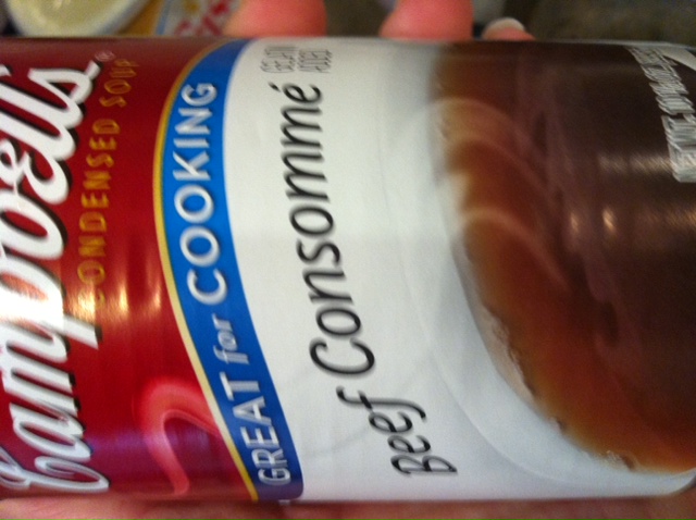 2 cans condensed beef consume (I use Campbell’s soup brand)