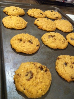 Bake at 350 for 8-11 minutes. Mine were perfect at 9 minutes. Watch for slight browning around the very edges. As soon as you see that, get them out of the oven. They will seem undercooked in the center but it is essential that you get them out at this point so you can enjoy that super moist cookie instead of a crunchy one. They will continue to cook and set once they are out of the oven. Wait 2-3 minutes before removing them from the cookie sheet. Cool on cooling rack. Be sure to taste your first one warm out of the oven… mmm…. so yummy!