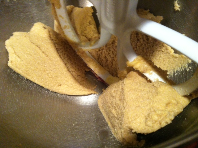 In a separate bowl, combine flour, salt, cinnamon and baking soda, mix well. Add to butter mixture. The dough will be very dry and crumbly at this point.