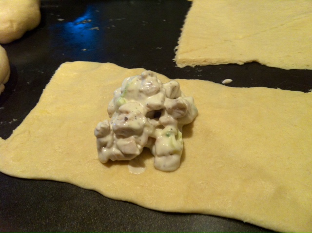 *note* – If you want a little more filling and less bread, double the filling recipe. There is enough dough in each rectangle to hold 2x the filling if that is how you would prefer it.