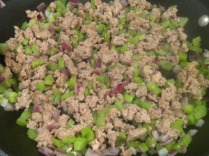 1 lb ground turkey breast (ground beef is also yummy in the “not so low-fat” version :))