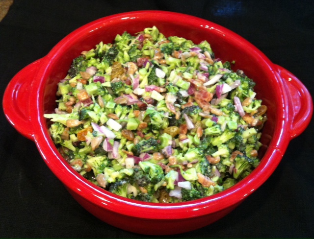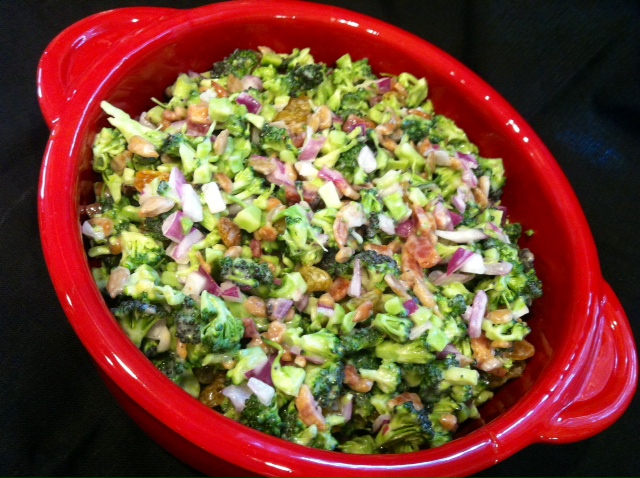 I had this broccoli salad for the first time a few years back and was completely shocked at how much I loved it. First of all, I am not a veggie lover and raw broccoli is not exactly at the top of the list either. I was a little scared to try it because it seemed to be quite a strange combination but I gave it a “no thank you bite”(as we call it in our house) and I was instantly in love. I had 3 helpings and it immediately jumped into my “favorite recipes” stack. This is a great recipe for potlucks and holiday dinners. Make sure you bring a few copies of the recipe with you because you will most likely be shelling them out.