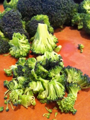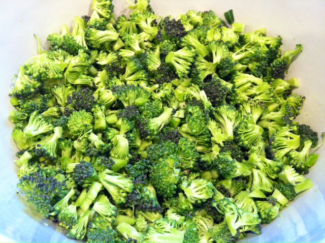 Chop Broccoli into very small segments (you can accomplish this by cutting at the very top of the stem just under the little buds, then chop the larger parts of the stem into small pieces.)