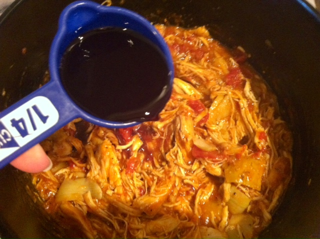 Start heating the water for your pasta. Remove chicken from oven. At this point your chicken will be extremely tender and will shred very easily (if desired) with a fork. After shredding, add red wine and bake an additional 10 minutes. While chicken is cooking, add pasta to boiling water. Add 1 Tbsp salt to the pasta water once it reaches a full boil. Once drained, angel hair pasta is infamous for sticking together… If you are having this issue, run a little hot water over the noodles. This will rinse some of the starch away and allow the noodles to separate. Just be sure to drain thoroughly again.