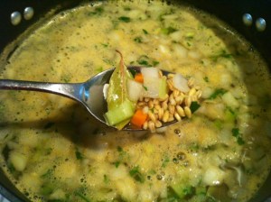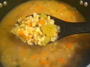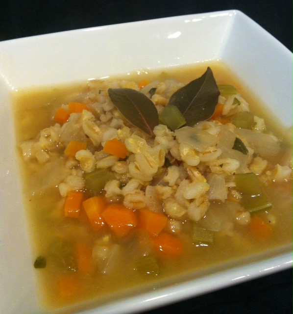 A few weeks ago, I was at one of my favorite restaurants, dying to have a bowl of their always-amazing soup and a few slices of their homemade bread. I asked what their “Soup of the Day” was and as she said “Cream of Broccoli and Vegetable Barley,” I felt the wind quickly escape my sails. Neither of them sounded good to me since I have never been a big broccoli fan and though I had never had it, the barley soup just didn’t sound appealing. I was really hoping for German Potato or Clam Chowder… something hearty, but I reluctantly ordered the vegetable barley soup because I like their homemade bread and real butter so much. I was so glad I ordered it because I LOVED it! I attempted to replicate it tonight and was so excited when I took my first bite. I actually liked it even more than the soup I was served at the restaurant. It is really savory and surprisingly hearty, but really healthy at the same time. This was a quick soup to throw together, however, it does have to cook for 90 minutes so it takes a little while to get to the end product. I’m sure this would be great in the crock pot too.