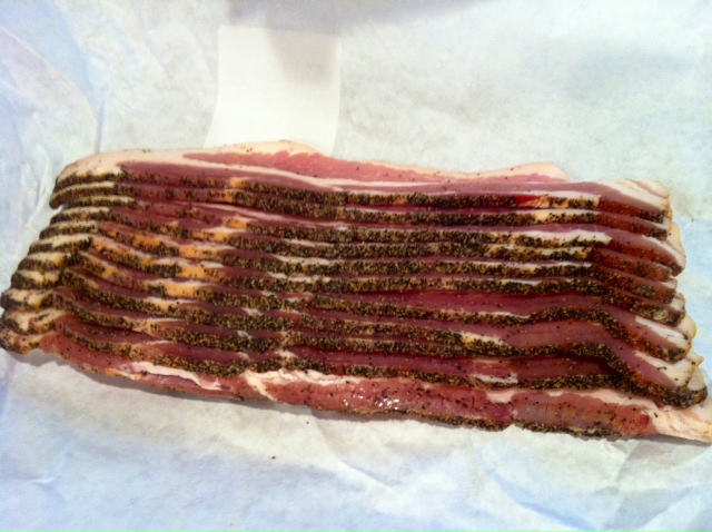 1 lb thick cut peppered bacon. You will get 2 rolls for each piece of bacon so plan accordingly with the number of mouths you will be feeding. I ALWAYS buy my bacon at the butcher counter. At most grocery stores, you can find super thick, meaty, peppered bacon for right around the same price (or cheaper when it’s on sale) as the pre-packaged bacon where you get 2 square inches of a window to guess if the bacon actually looks that good or if they have laid it in such a way that the only actual meat on the bacon is showing in that little window. Seriously, that just isn’t fair.