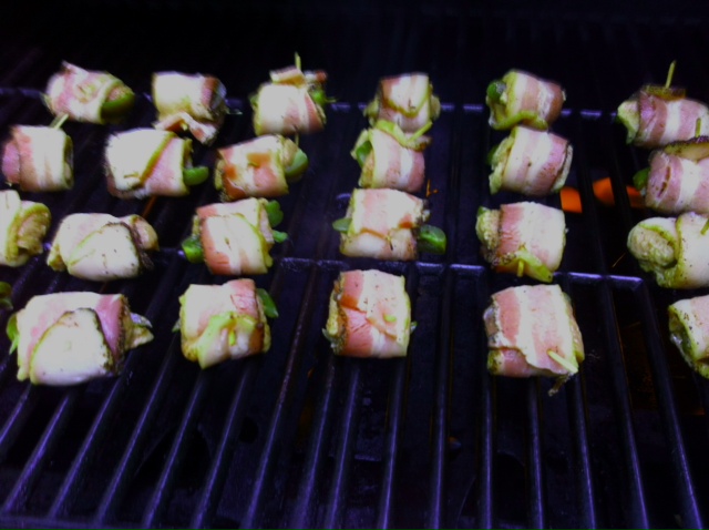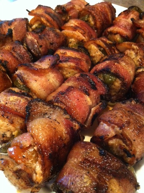 Of course, most of us don’t have wild turkey breasts readily available; however, I am totally convinced you could wrap anything in bacon and add a jalapeno and it would be fabulous. I also heard that adding a little cube of cream cheese in the middle makes them Turkey Poppers *drool*.