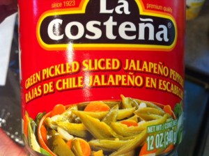 1 can pickled, sliced jalapenos. If you are not a big fan of super spicy stuff, get the “tamed” jalapenos. They still have all that yummy flavor without lighting your mouth on fire.