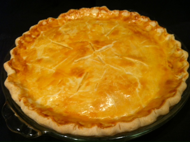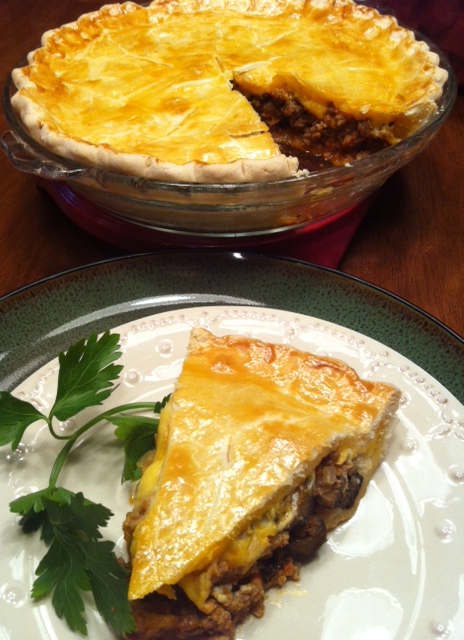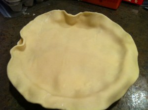 1 package of pre-made pie crust (feel free to make your own. I had never used pre-made before but was pleasantly surprised at how good it was since I am generally not a big fan of the pre-made crusts/doughs. You can also use 2 packages Crescent rolls, just remember to grease your pan if you do.