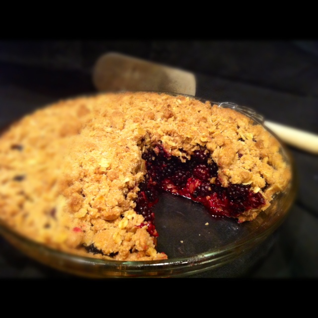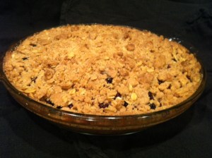 Crumble the remaining mixture on the top of the berries. Bake for approximately 20 minutes or until the top is golden brown. Let cool slightly. Serve warm.