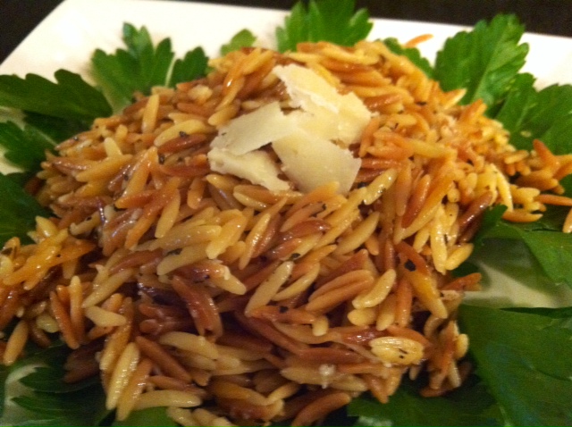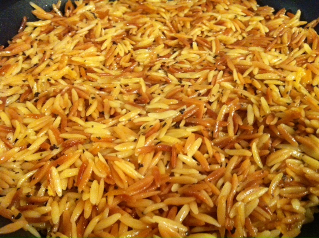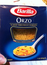 So, I’m sure many of you are asking “What in tar-nation is Orzo?” Am I right? Okay, maybe you didn’t use the word “tar-nation.” For those of you who have never heard of Orzo, it’s time you experienced the wonderfully versatile pasta that is shaped like a slightly larger grain of rice. You can find it in any grocery store in the pasta aisle or some grocers carry it in their bulk section. On of my friends (Miss Katie) also makes a killer cold Orzo salad with cucumbers and feta and some kind of dressing… yumola!