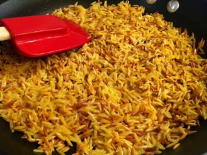 This recipe is one of our family’s favorites because it tastes a lot like the Rice-O-Roni (“the San Fransisco Treat!” …maybe I am dating myself a bit here..) but waaaaayyyy better. Anyways, bottom line, Rice-O-Roni tastes delish in a Kraft Mac ‘n’ Cheese kind of way but it is one of those boxed food items that probably has more preservatives and terrible stuff for you in it than it does good stuff. Here is where the boxed treat meets gourmet. This recipe would go over as a side with just about any meal from burgers to roasted lamb. It’s fabulous and just as fast as the boxed stuff.