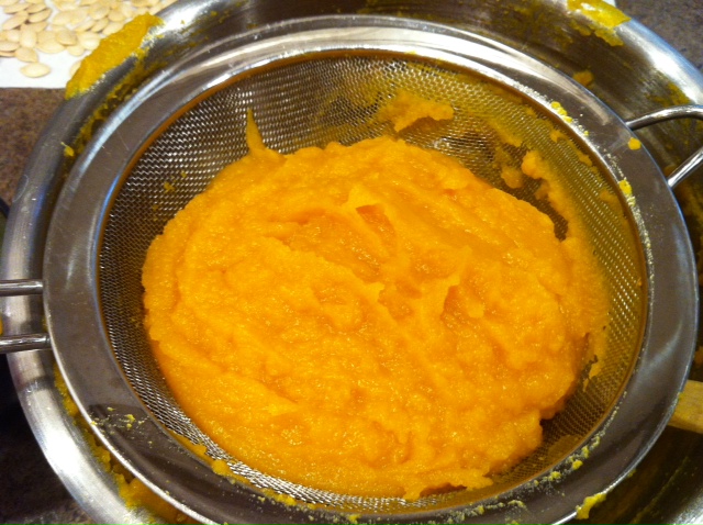 Puree until very smooth. Using a fine mesh strainer, strain excess liquid from puree. It seems like the puree will just run right through but it won’t. Don’t force it through the strainer, just let it drain naturally. Let each batch drain for several minutes. *One of my blog followers recommends in the comments below to let the puree sit in the fridge overnight. The liquid will all come to the top while the puree sinks to the bottom so if you are not planning on using it right away, this would be a really easy option. *