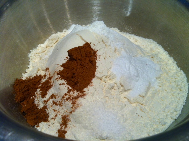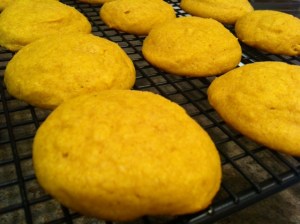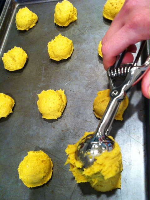 Add flour baking soda, baking powder, cinnamon, and salt; mix well. Drop dough by rounded teaspoonfuls 2 inches apart onto un-greased cookie sheets. (I prefer my medium sized-cookie scoop).