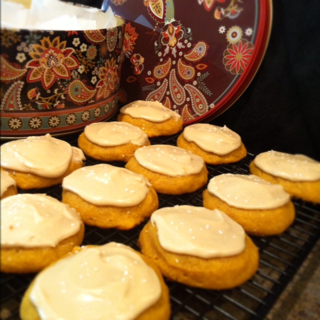 Frost cooled cookies then sprinkle very lightly with kosher or sea salt. Let stand until frosting is set.