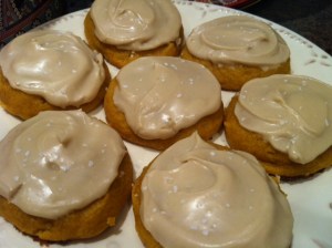 I have made several variations of this cookie over the years but I think this is my favorite. Before tasting salted caramel, I was not crazy about the idea, but after I did, I understood what this whole Salted Caramel craze was about. This cookies are so light and “pillowy” (for a lack of a better word). The frosting is rich and buttery and those little granules of salt on top break the sweetness slightly and just make the taste peak with perfection. This is a family favorite of ours and will soon be a favorite in your family I’m sure.
