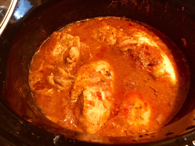 The recipe calls for 1 lb of boneless, skinless chicken breasts as well as one pound of boneless, skinless thighs (which have become one of my favorite meats to cook with in the crock pot). I had gotten a crazy deal on organic vacuum sealed BS thighs at one of our natural grocers so I bought about 20 lbs of it. After using the first pack for stir fry one night, I was a little put off by the amount of fat that I had to cut through so the rest sat in my freezer for a couple of months until I tried this recipe. Crock pot is the way to go for this inexpensive cut of meat! It just melts the fat away and makes really tender juicy chicken. If you cannot find the thighs, feel free to just use all breast.