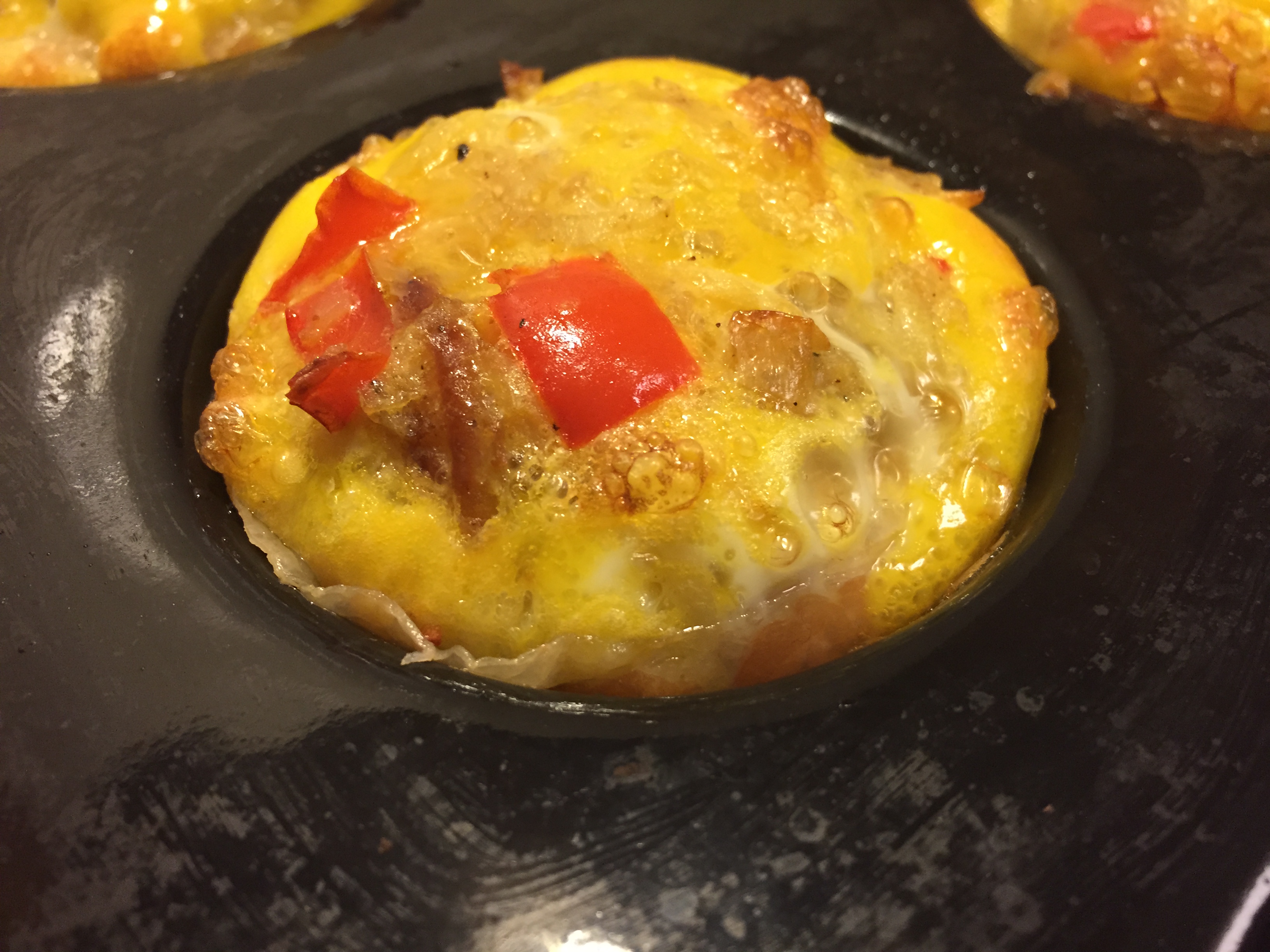 Bake at 350F for 20 minutes. Check to see if the centers of the egg cups are firm and not still runny . If they are still runny, cook for 2 minutes at a time until they are firm (unless they are considerably runny, then add several minutes.) Mine took 26 minutes total this last time but it will vary based on slight differences in oven temps and pan material so just keep your eye on it toward the end.