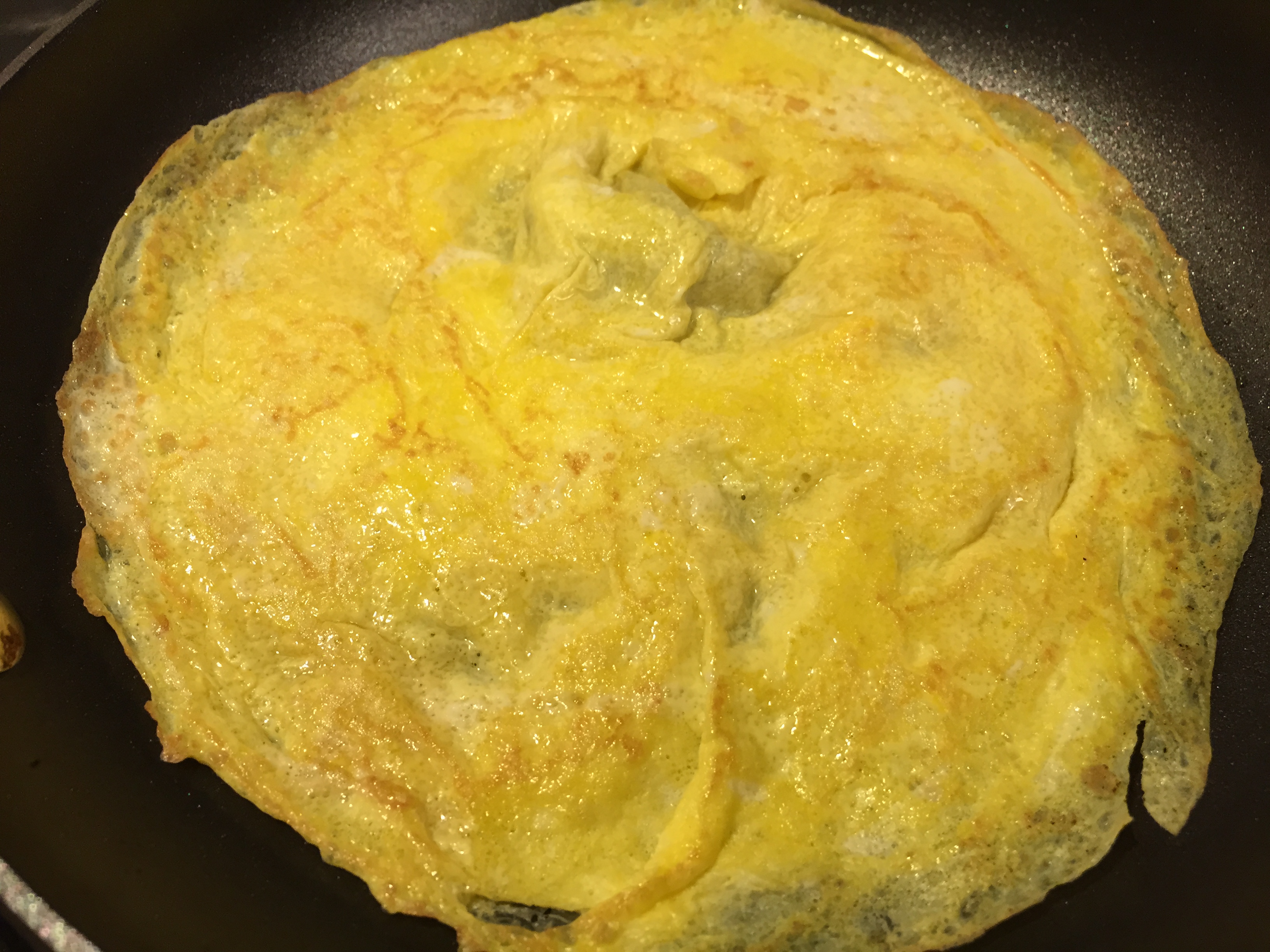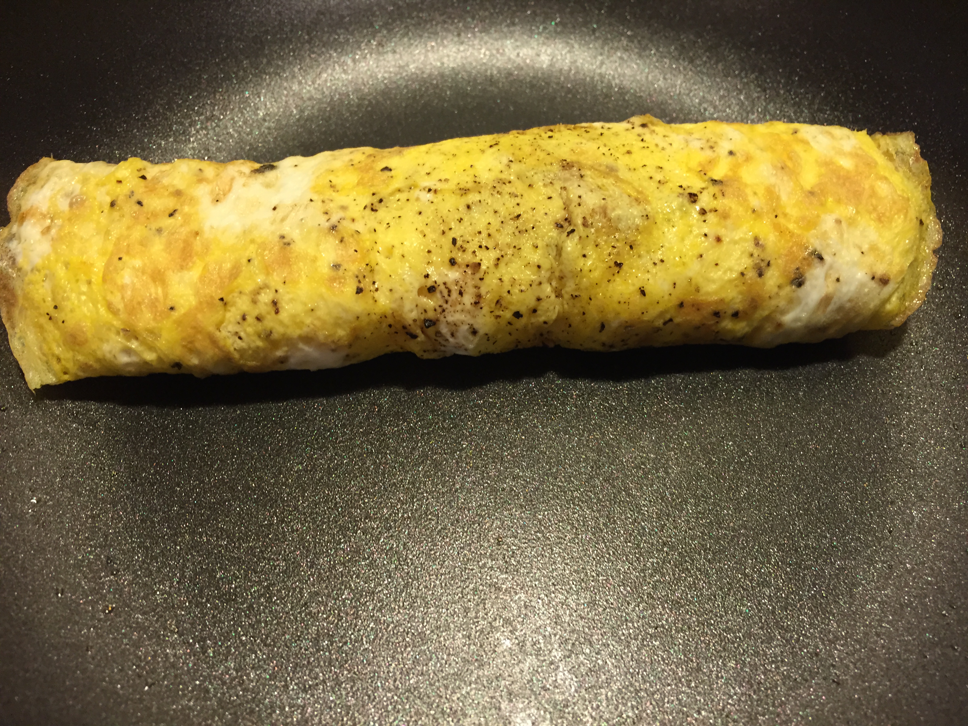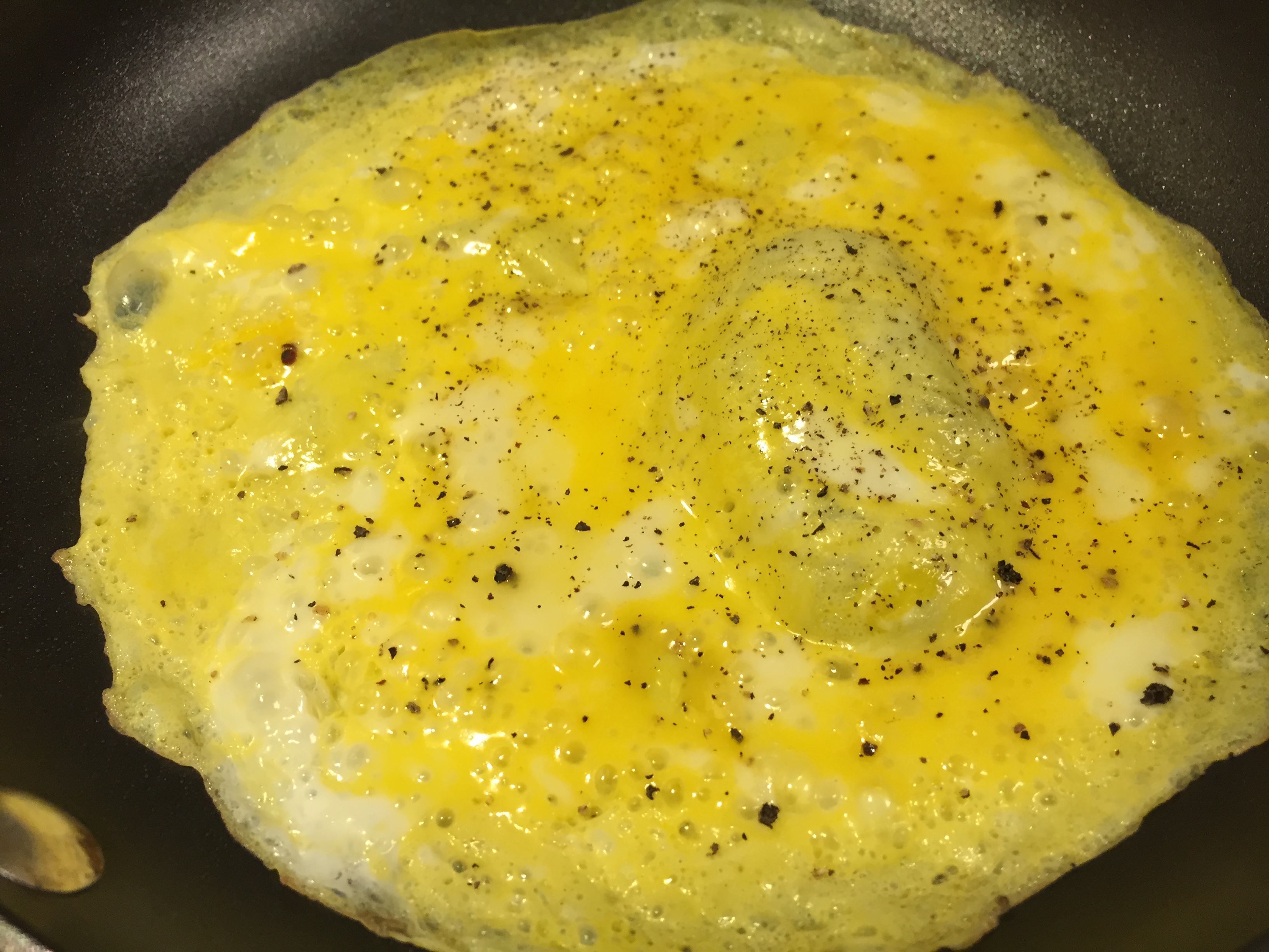 - Beat one egg in a small dish. Pour into a buttered, preheated pan. Pick up your pan and circle it around to where the egg covers the bottom of the pan. Let cook about 20-30 seconds or until the egg is firm. Sprinkle with a little salt and pepper then flip over. Cook for an additional 20-30 seconds.