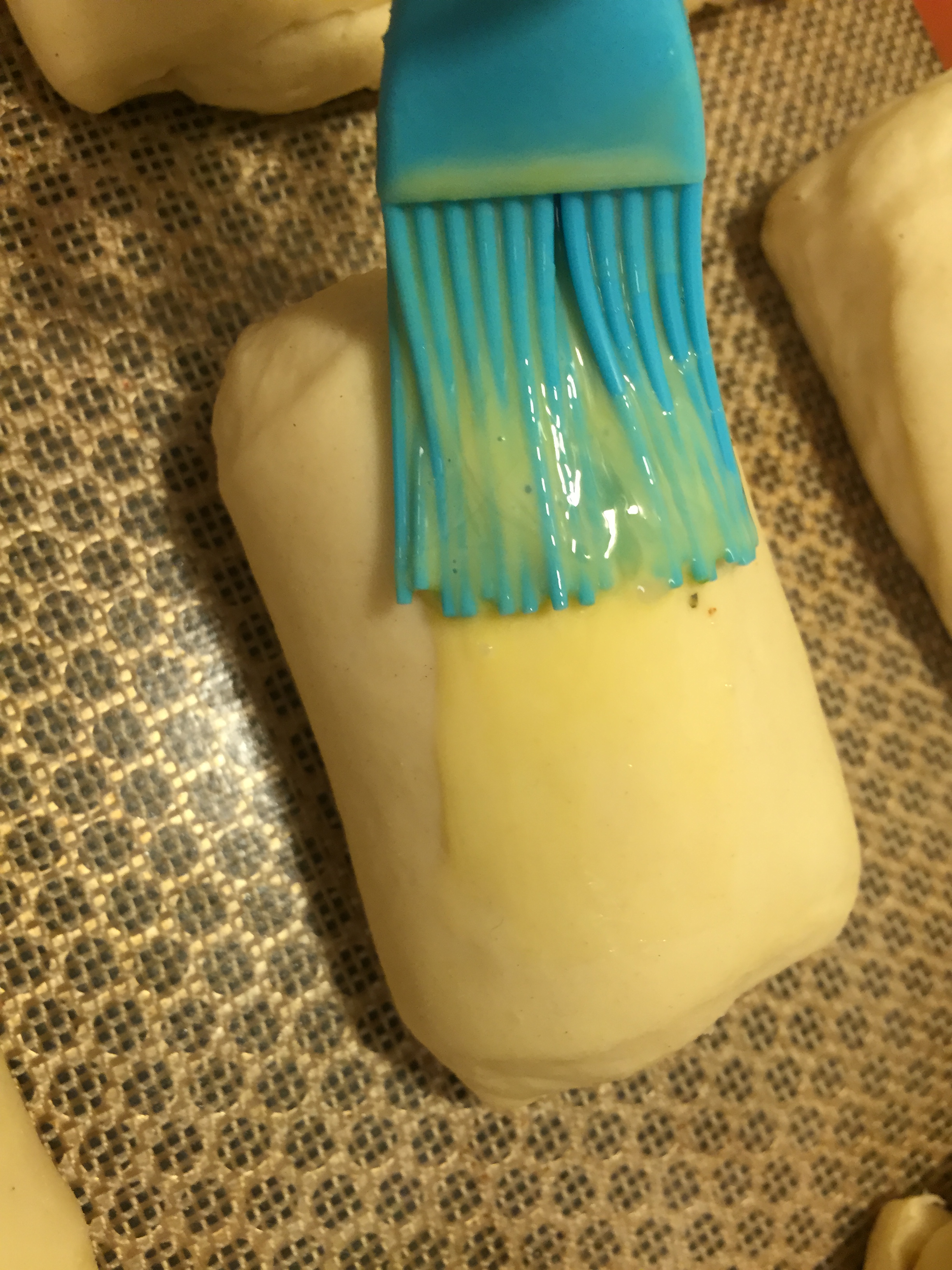 - Next, whisk 1 egg and 1Tbsp of heavy cream in a small dish. Now brush it on the tops of those beautiful rolls with a pastry brush, gently.